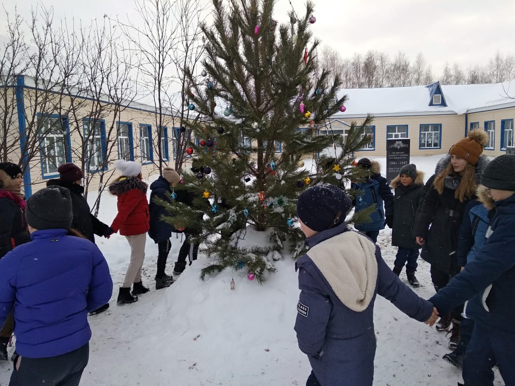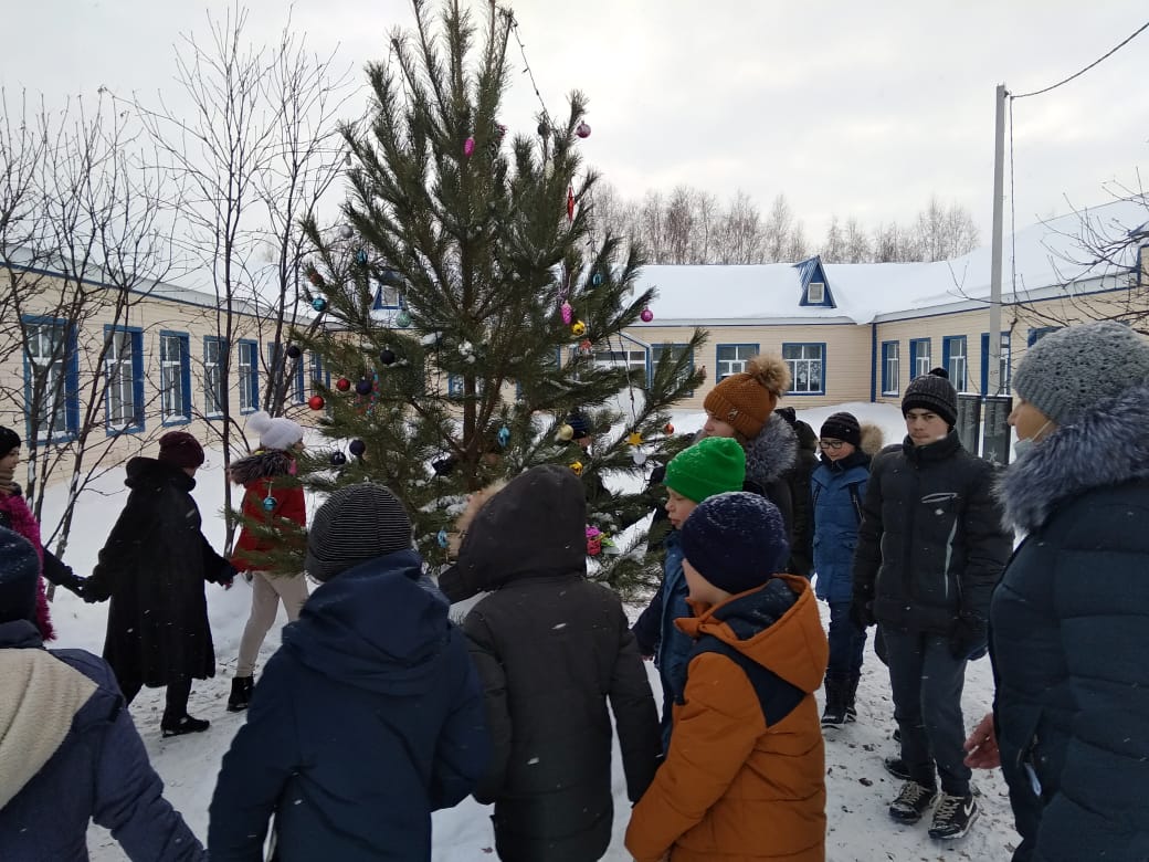 Новогодний хоровод во дворе с Дедом морозом